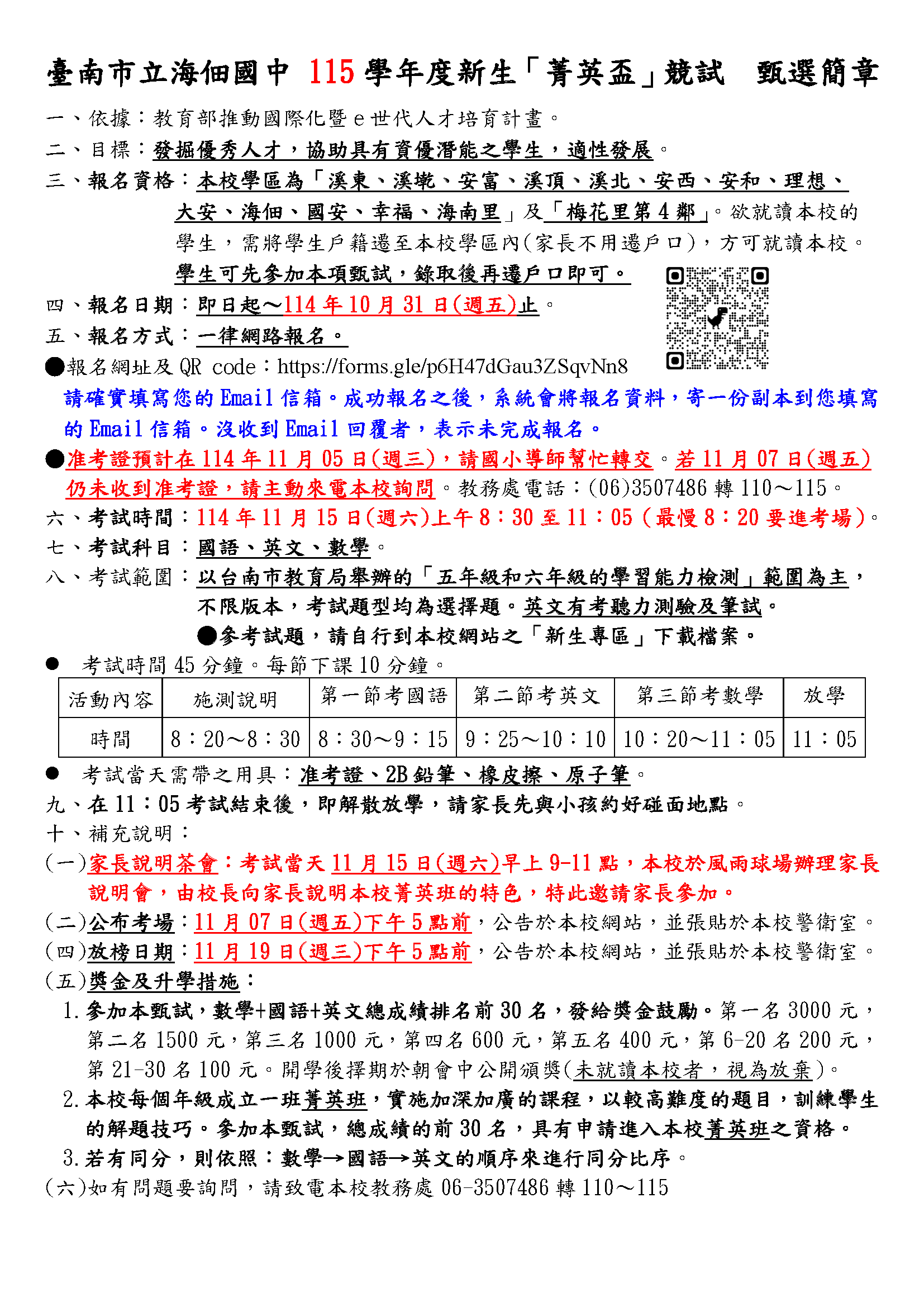 114年|海佃國中新生入學考簡章