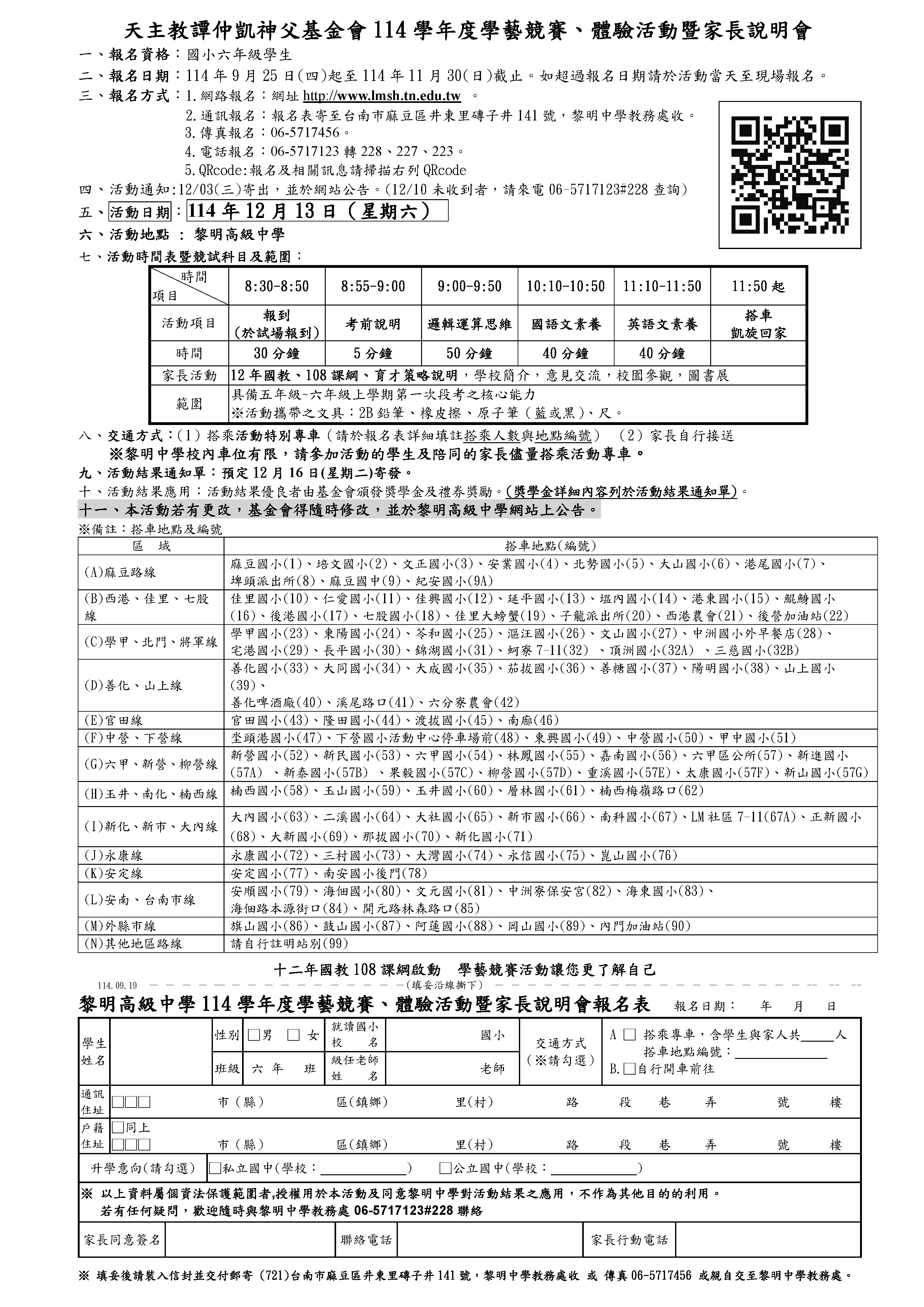 | 臺南市私立黎明中學114年度黎明中學小六學藝競賽 | |